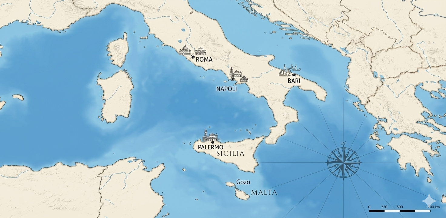 Sicily (Italian and Sicilian: Sicilia), officially the Sicilian Region (Italian: Regione Siciliana; Sicilian: Riggiuni Siciliana), is an island in the central Mediterranean Sea and one of the twenty regions of Italy, situated south of the Italian Peninsula in continental Europe. With 4.7 million inhabitants, including 1.2 million in and around the capital city of Palermo, it is both the largest and most populous island in the Mediterranean Sea.